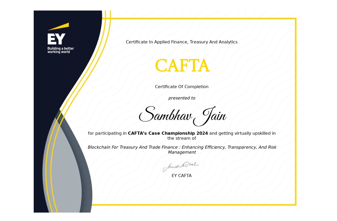 - Course Name Blockchain for treasury and trade Finance : Enhancing efficiency, transparency, and risk management